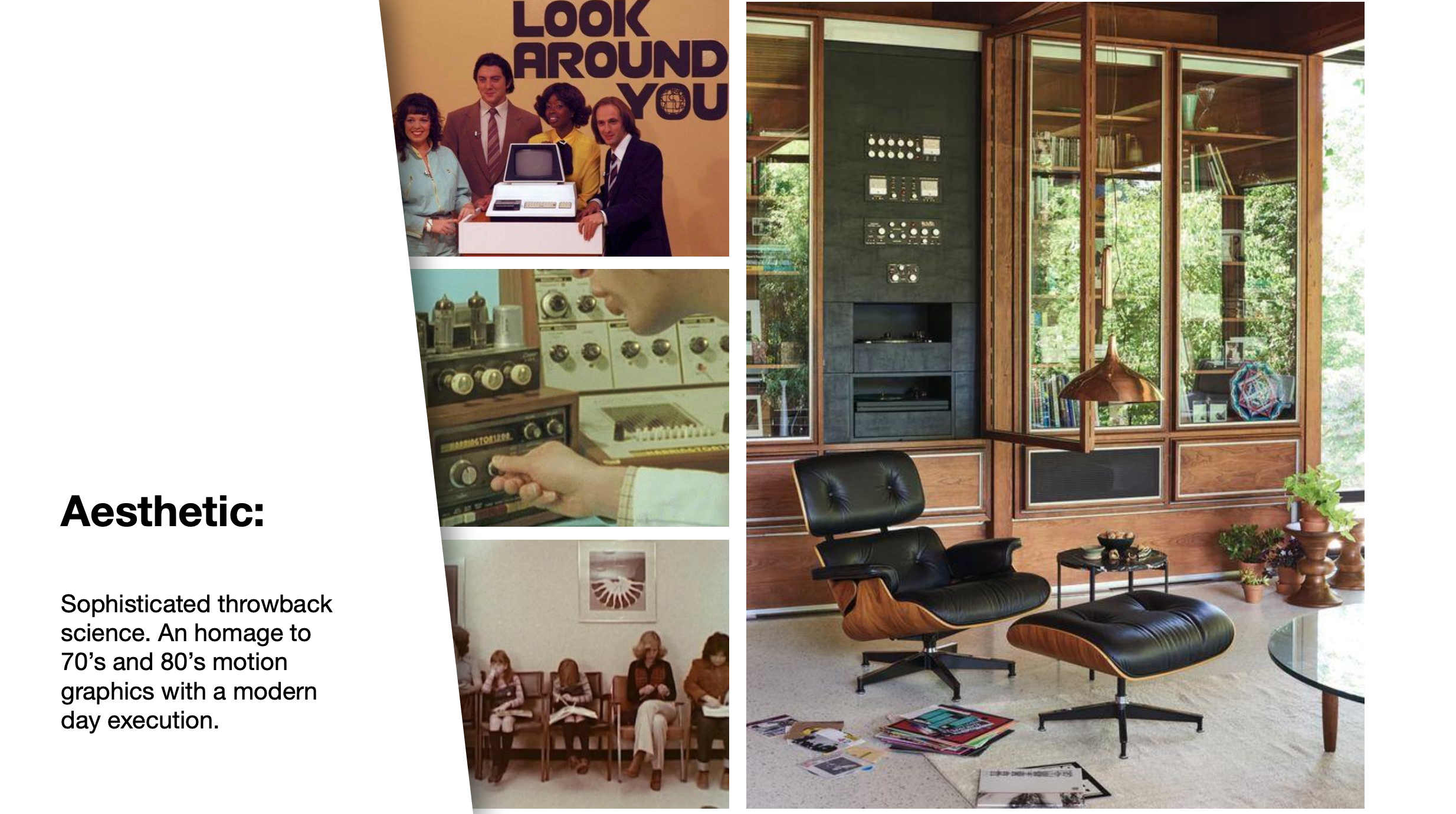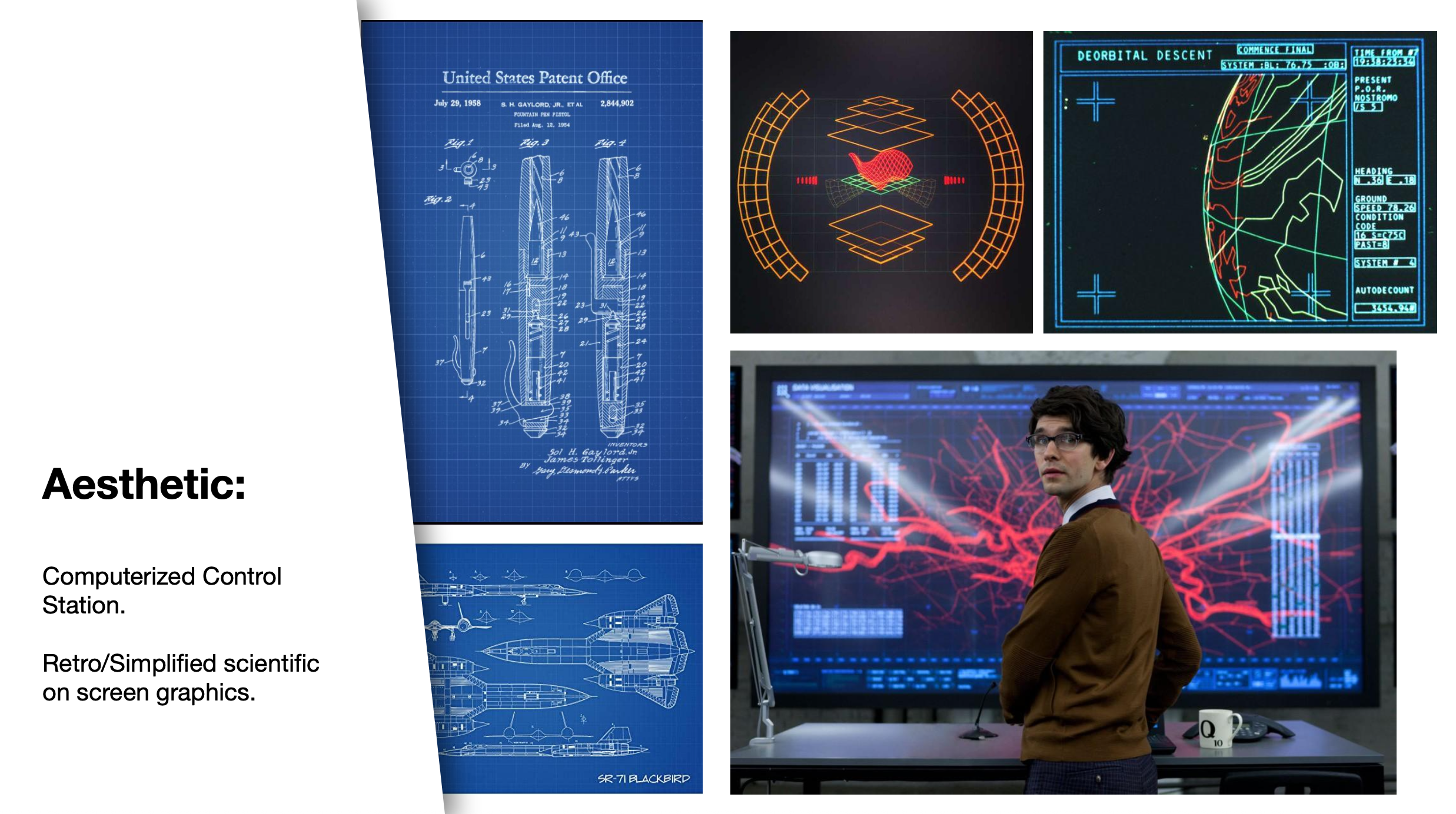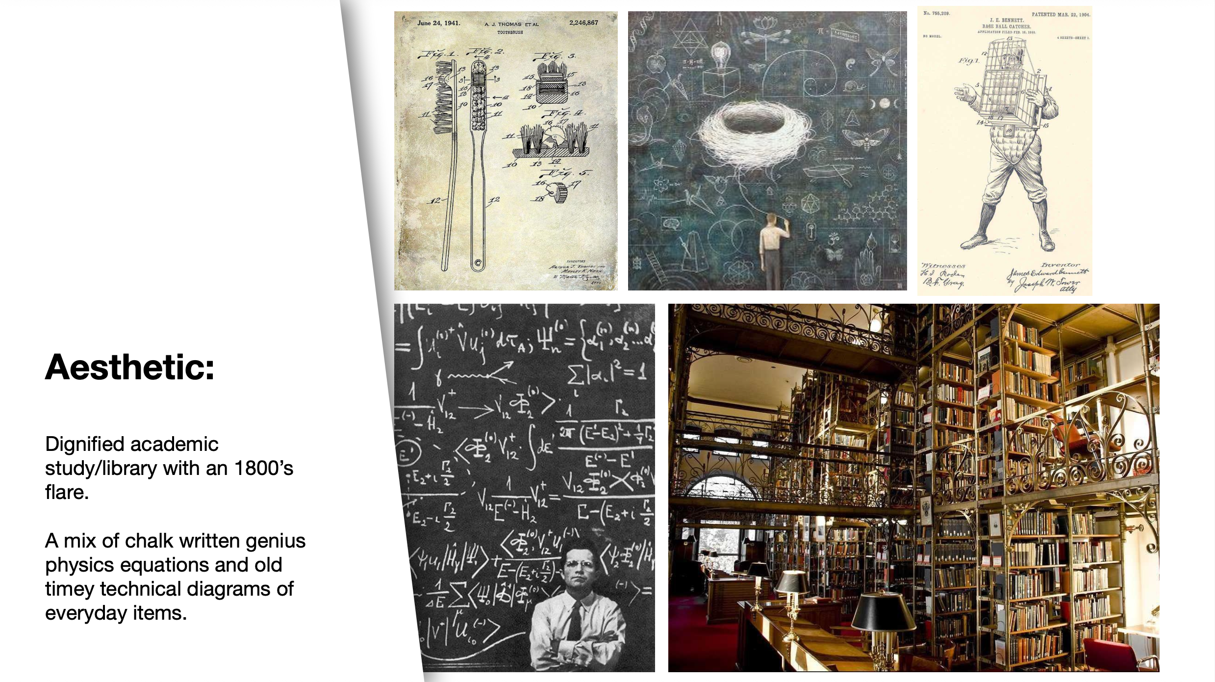 I pitched three distinct visual approaches: a dignified academic study with 1800s-era patent drawings and chalkboard equations; a computerized control station with retro scientific UI; and a sophisticated 70s/80s throwback with bold geometric shapes and vintage palettes.